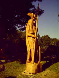 2,3 Tonnen sind auf Hölzer zu drehen, die Figur ist erwählt, soll ein Odin entstehen. 3 Meter hoch, fast 1 Meter dick, nun frisch ans Werk, der Odin wird schick. |