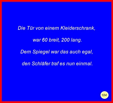 Text Die Tür von einem Kleiderschrank,war 60 breit, 200 lang. Dem Spiegel war das auch egal, C 2008 Buchstabe des Tages: n