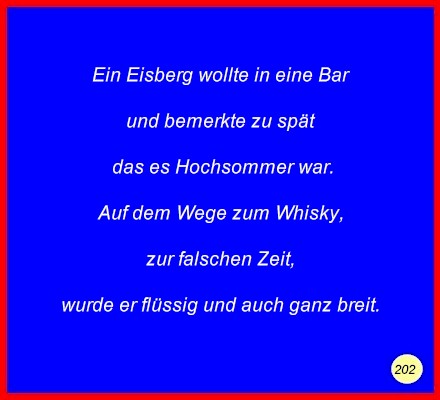 Text Ein Eisberg wollte in eine Barund bemerkte zu spät das es Hochsommer war. Auf dem Wege zum Whisky, zur falschen Zeit, C 2008 Buchstabe des Tages: H