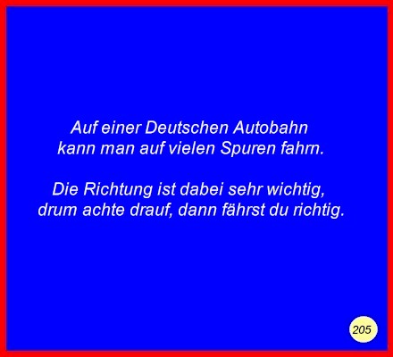 Text Auf einer Deutschen Autobahnkann man auf vielen Spuren fahrn. Die Richtung ist dabei sehr wichtig, C 2008 Buchstabe des Tages: r