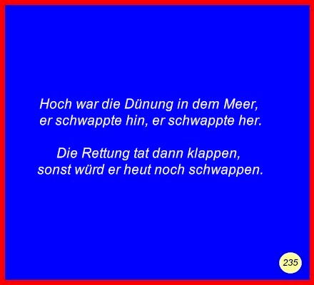Text Hoch war die Dünung in dem Meer,er schwappte hin, er schwappte her. Die Rettung tat dann klappen, C 2008 Buchstabe des Tages: d