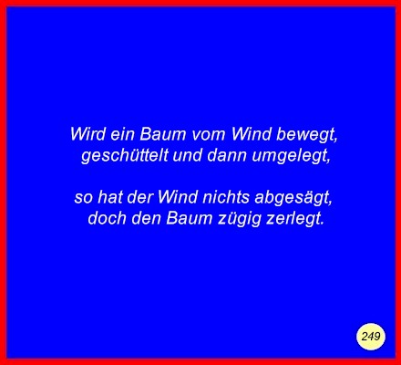 Text Wird ein Baum vom Wind bewegt,geschüttelt und dann umgelegt, so hat der Wind nichts abgesägt, C 2008 Buchstabe des Tages: r