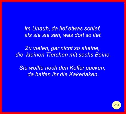 Text Im Urlaub, da lief etwas schief,als sie sie sah, was dort so lief. Zu vielen, gar nicht so alleine, Sie wollte noch den Koffer packen, C 2008 Buchstabe des Tages: r