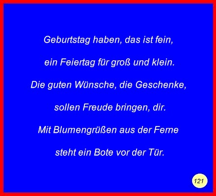Text Geburtstag haben, das ist fein,ein Feiertag für groß und klein. Die guten Wünsche, die Geschenke, Mit Blumengrüßen aus der Ferne C 2008 Buchstabe des Tages: w
