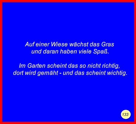 Text Auf einer Wiese wächst das Grasund daran haben viele Spaß. Im Garten scheint das so nicht richtig, C 2008 Buchstabe des Tages: e