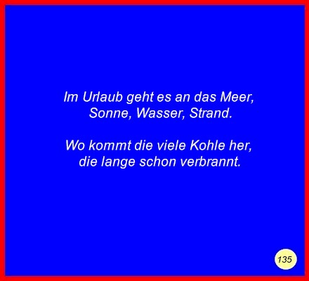 Text Im Urlaub geht es an das Meer,Sonne, Wasser, Strand. Wo kommt die viele Kohle her, C 2008 Buchstabe des Tages: b