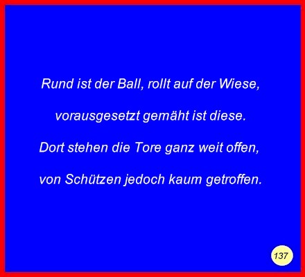 Text Rund ist der Ball, rollt auf der Wiese,vorausgesetzt gemäht ist diese. Dort stehen die Tore