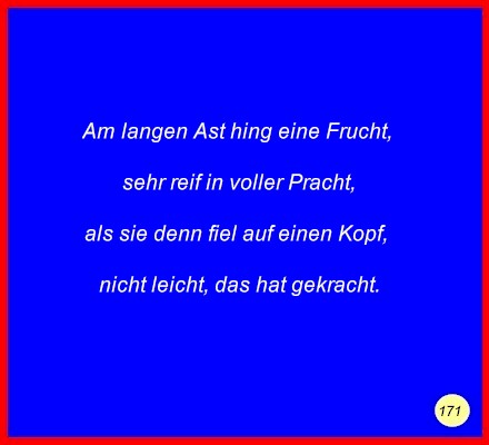 Text Am langen Ast hing eine Frucht,sehr reif in voller Pracht, als sie denn fiel auf einen Kopf, C 2008 Buchstabe des Tages: e