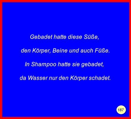 Text Gebadet hatte diese Süße,den Körper, Beine und auch Füße. In Shampoo hatte sie gebadet, C 2008 Buchstabe des Tages: i