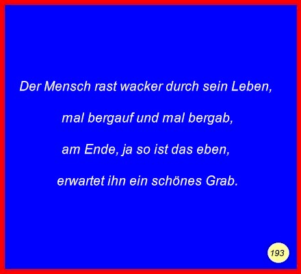 Text Der Mensch rast wacker durch sein Leben,mal bergauf und mal bergab, am Ende, ja so ist das eben, erwartet ihn ein