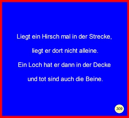 Text Liegt ein Hirsch mal in der Strecke,liegt er dort nicht alleine. Ein Loch hat er dann in der Decke C 2008 Buchstabe des Tages: s