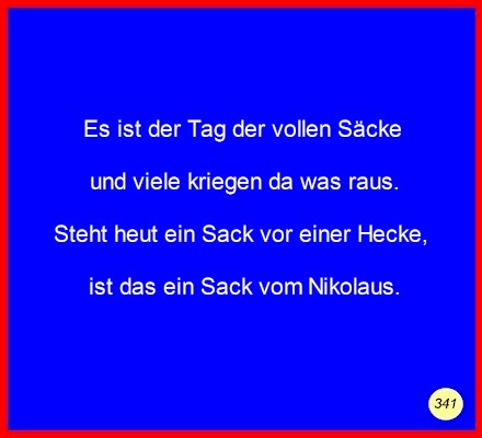 Text Es ist der Tag der vollen Säckeund viele kriegen da was raus. Steht heut ein Sack vor einer Hecke, C 2008 Buchstabe des Tages: e