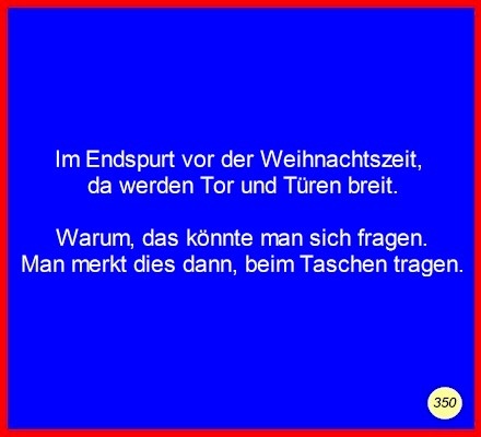 Text Im Endspurt vor der Weihnachtszeit,da werden Tor und Türen breit. Warum, das könnte man sich fragen. C 2008 Buchstabe des Tages: d