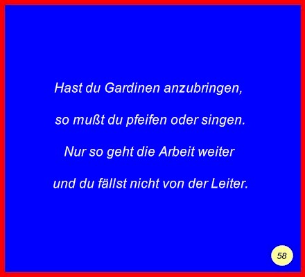 Text Hast du Gardinen anzubringen,so mußt du pfeifen oder singen. Nur so geht die Arbeit weiter und du fällst