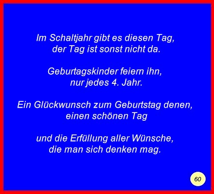 Text Im Schaltjahr gibt es diesen Tag,der Tag ist sonst nicht da. Geburtstagskinder feiern ihn, Ein Glückwunsch zum Geburtstag denen, und die Erfüllung aller Wünsche, C 2008 Buchstabe des Tages: A