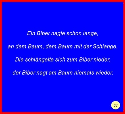 Text Ein Biber nagte schon lange, an dem Baum,dem Baum mit der Schlange. Die schlängelte sich zum Biber nieder, C 2008 Buchstabe des Tages: e