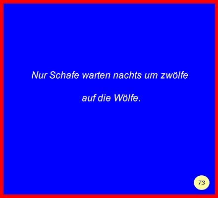 Text Nur Schafe warten nachts um zwölfe auf die Wölfe. C 2008 Buchstabe des Tages: n