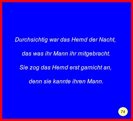Text Durchsichtig war das Hemd der Nacht,das was ihr Mann ihr mitgebracht. Sie zog das Hemd erst gar nicht an, C 2008 Buchstabe des Tages: w